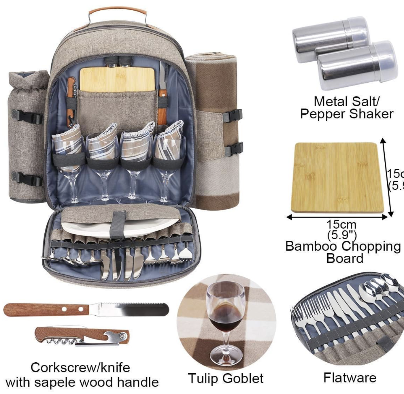 The Brush Beige 4-person set is beautiful and practical. Insulated compartments work great, and everything fits perfectly. We’ve used it for beach days and camping – holds up wonderfully and looks premium. Best picnic backpack we’ve owned!